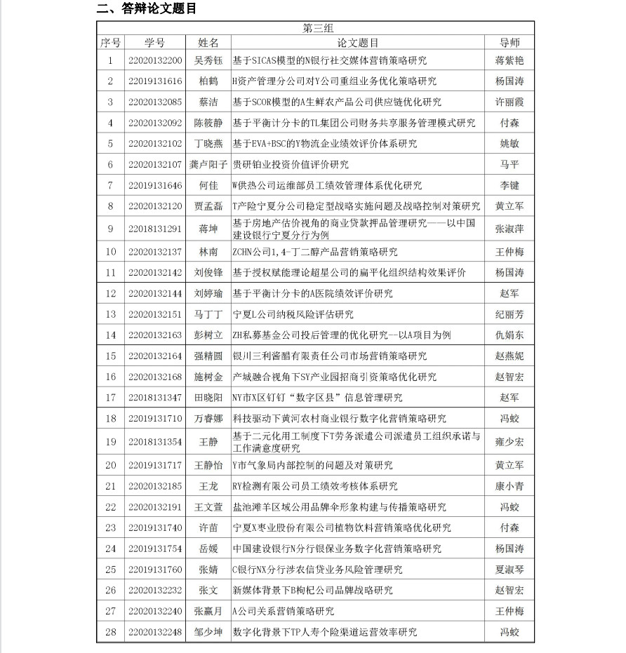 2023届工商管理硕士(MBA)学位论文答辩 (第三组)