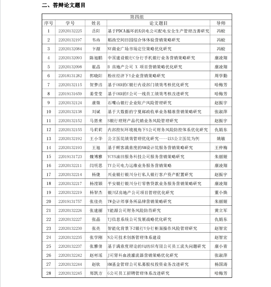2023届工商管理硕士(MBA)学位论文答辩 (第四组)