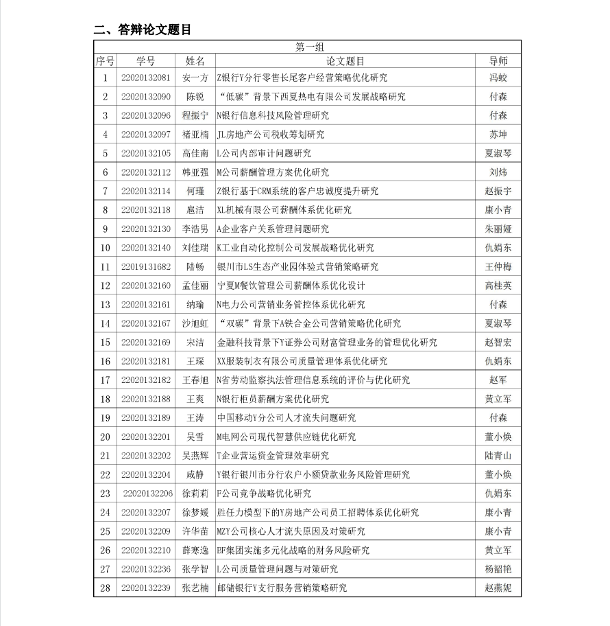 2023届工商管理硕士(MBA)学位论文答辩 (第五组)