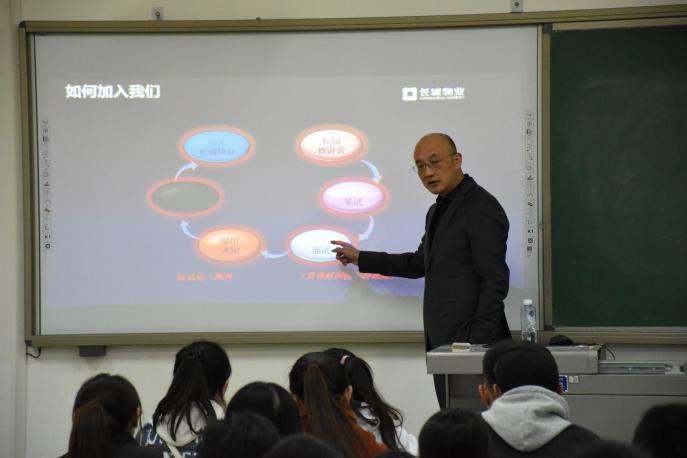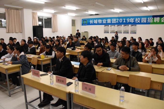 1029日晚,贺兰山校区文荟楼405教室座无虚席,长城物业集团股份有限公司2019年招聘宣讲会在此举行,2015级应届毕业生积极到场参加。
