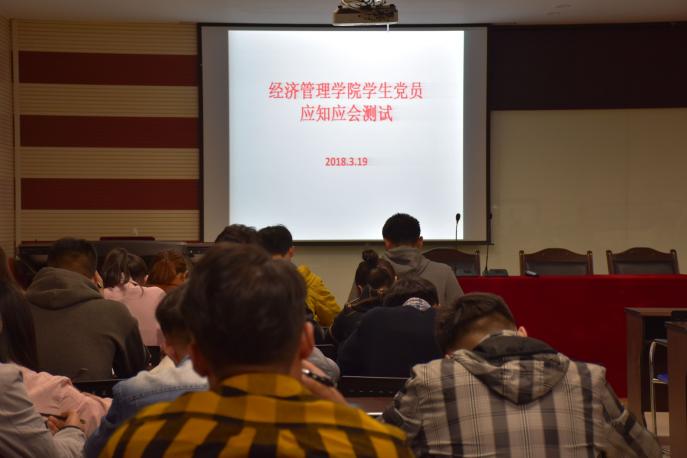 首先,学生党支部书记黄旭兴老师要求学生党员认真学习党章党规、习近平总书记系列重要讲话精神和党的十九大精神,积极承担支部安排的各项工作,做一名合格的学生党员。随后,学生党员认真完成此次测试。