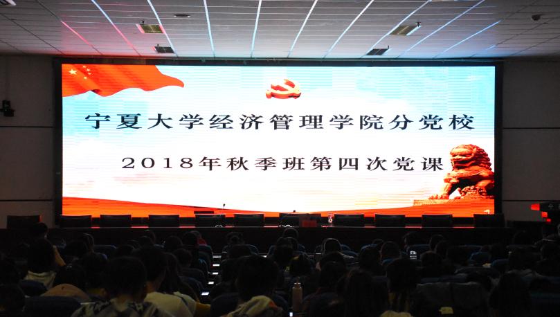 分党校2018年秋季班第四次党课培训在贺兰山校区文荟楼东报告厅顺利举行。第三十二期入党积极分子和第八期发展对象到场学习。本次党课以“心中有信仰,脚下有方向”为主题,院团委书记、工商管理本科生党支部书记黄旭兴担任本次党课主讲人。