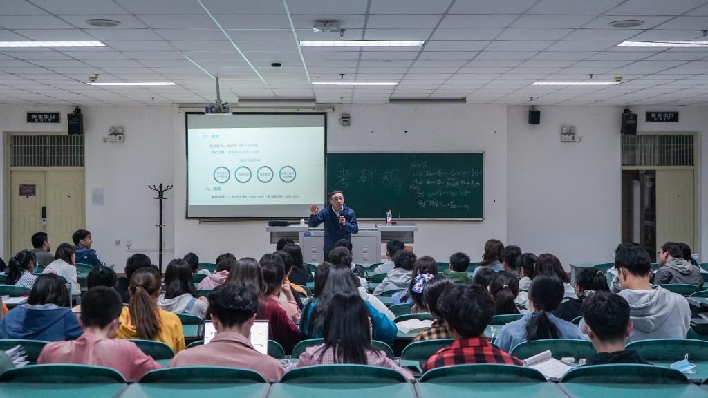 考研规划讲座在贺兰山校区文荟楼132举行,由硕成教育校长顾海源为主讲人,污污漫画