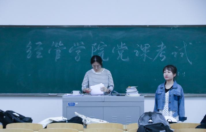 此外,各考场均安排两名监考人员,考场秩序井然,考生认真作答,在规定的时间内,完成了党课结业考试。