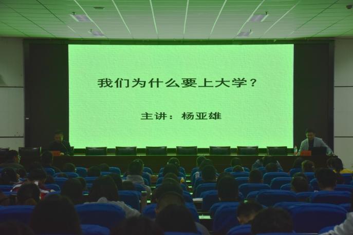 讲坛伊始,杨亚雄用诙谐的语言介绍了当代大学生日常生活,现场欢笑连连。他从“当代大学生最迷茫的18个问题,大学遗憾排行榜”等资料出发,告诫同学们去正视迷茫的状态,不断认识自己,寻找方法,走出迷茫!随后,杨亚雄针对同学们最困惑的问题“大学生活应如何有效规划?”进行解答,他强调,大学最为基本的要求就是不挂科,特别是在专业课多、难度大的大学二年级。在学习中,要把专业学科的学习抓稳抓牢,要充分利用图书馆资源、网络资源,阅读大量专业相关书籍,学习专业论文撰写并且积极参与专业课程实习,提高自身专业能力。与此同时,要重视数学、英语、写作及公众演讲能力,特别是英语能力的提升,在各方面完善自己。此外,杨亚雄以自身交际圈子为例,激励同学们广交益友,形成自己的朋友圈。讲坛过程中,现场互动频繁,部分同学上台分享了自己在大一学习生活方面的经验感想,在场同学深受感触!最后,程胜利对讲坛进行了总结,他激励在场2017级同学努力学习专业知识、提升英语水平,少一些浮躁,多一点勤奋,走好大学路!在热烈的掌声中,本次讲坛圆满落幕!