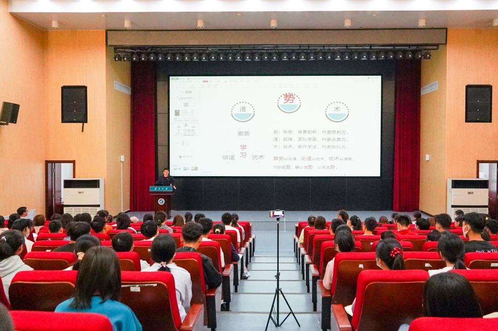 冯蛟从本科生学习的方式方法讲起,告诫同学们:“大学学习要察势以论道,论道以优术,优术以增势,巧妙顺势,辅以借势,以求造势。”本次讲座分为三大板块。一是洞察未来趋势之变。冯蛟以手机发展迭变为例,得出了当前世界最大的势——数字化时代的全方位变革正在形成,并向同学们介绍了当前数字化时代的特征是“技术为魂、用户为王、数据为源”,并用数据全面展示了数字化时代的思维之变和技术之变。二是理解时代营销真谛。冯蛟通过介绍营销的含义,图文并茂的讲述了营销的价值塑造和数字化时代营销之变,并通过举淘宝和京东两个企业的成功案例,介绍了数字化时代不一样的竞争机制、客户关系、盈利模式和组织形式。三是创新人才培养模式。冯蛟对数字化时代商科人才培养的现状进行了分析,介绍了数字化时代商科人才培养模式的理念和路径,列举了其中的利弊,并提出了建设性的意见。