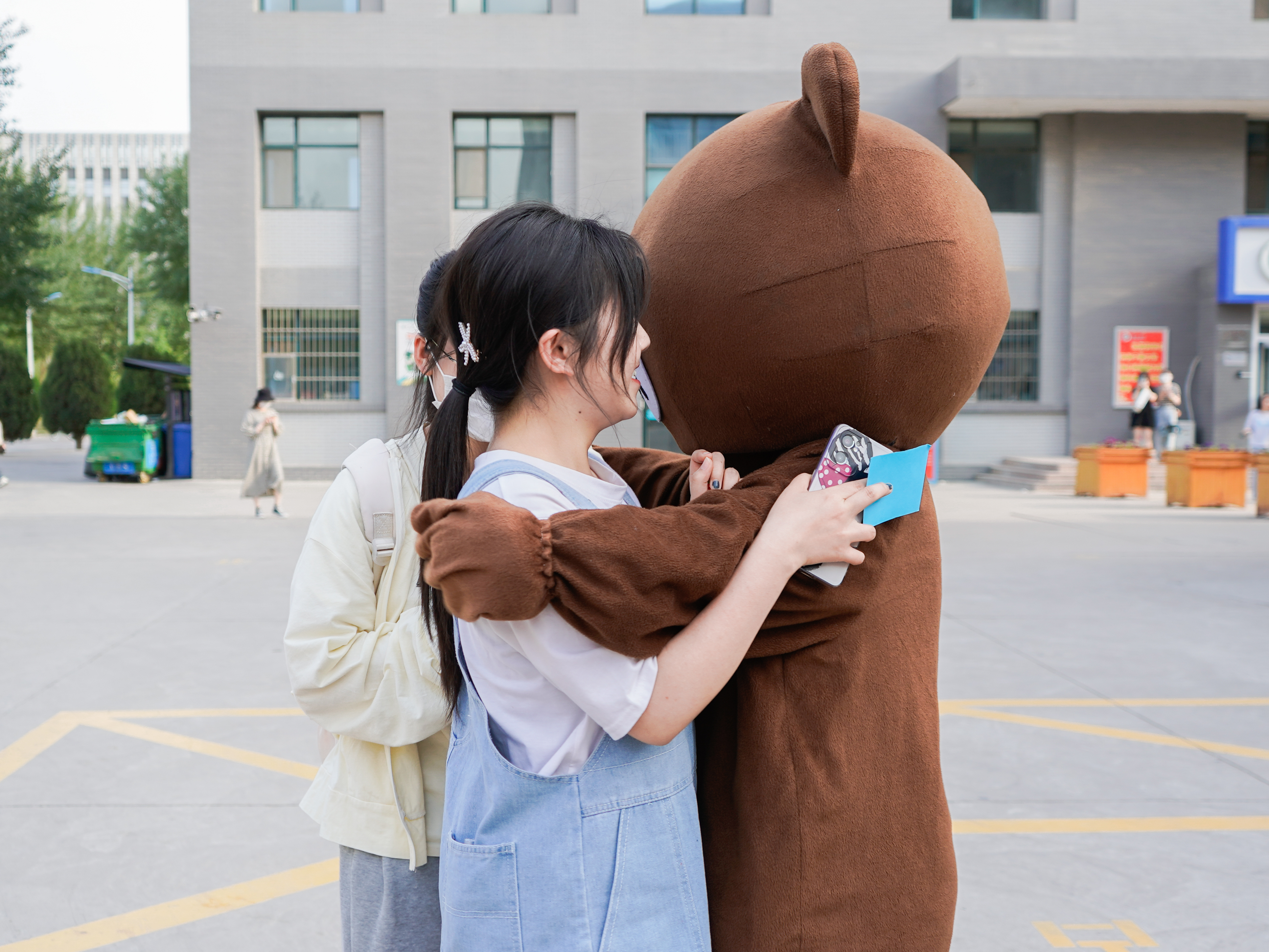 本次活动面向全院学生。活动包含“拥抱玩偶熊”与“抽取祝福卡片”两个环节。活动旨在通过与玩偶熊拥抱的方式,缓解同学们的学习及生活压力,通过随机抽取祝福卡片,收取并传递美好祝愿。