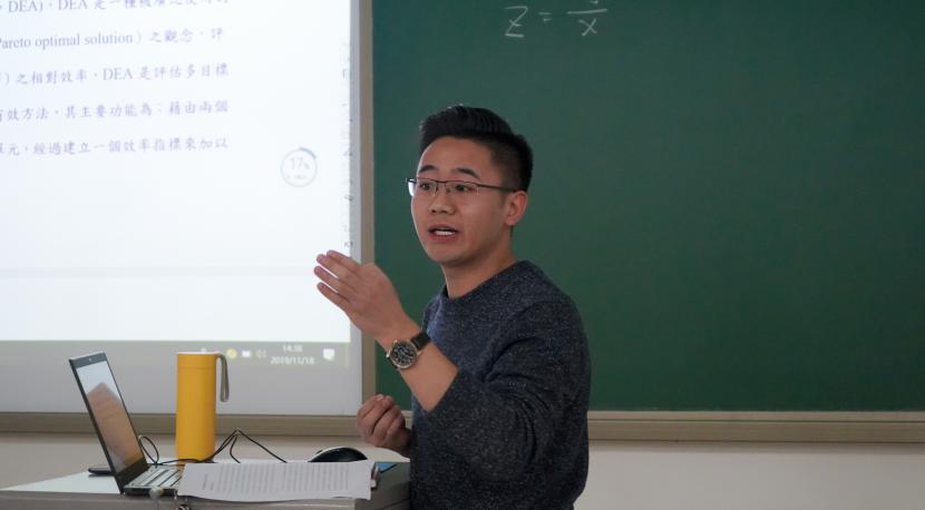 数据包络分析(Data envelopment analysis,DEA)是运筹学和研究经济生产边界的一种方法。该方法一般被用来测量一些决策部门的生产效率。张特在PPT中讲到,DEA主要被应用于衡量生产力,衡量生产力有三重困难:系统适当的投入(如劳动力时间、材料金额)及其度量方法、系统适当的产出(如现金支票、存款凭证)及其度量方法、正确衡量这些投入产出之间关系的方法。并借此提出“企业管理者如何评估一所快餐分销店、银行支行、健康诊所或学校的生产力”的问题。后张特结合DEA线性规划模型进行数据包线路分析,正如他所说,用DEA衡量效率可以清晰地说明投入和产出的组合,从而,它比一套经营比率或利润指标更具有综合性并且更值得信赖。讲毕,在座人员纷纷点头称赞,并致以热烈的掌声。