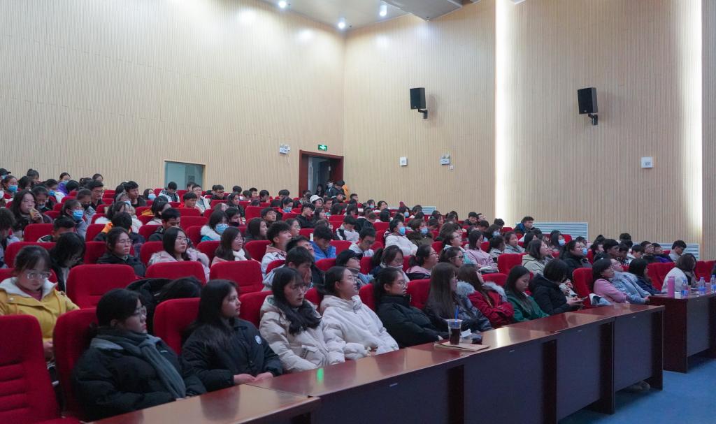 陈娜娜从自身考研的经历说起,详细地剖析了考研的题型,分享了一些相关的解题技巧,并告诉同学们书山有路勤为径,“多做多练”才是登顶的唯一方法;付小娟从学习、生活、未来发展三个方面精炼简要地分享了她的大学生活,并鼓励同学们要树立宏伟目标、坚定理想信念,心有所向,才能终有所得;杨百慧告诉同学们要充分利用大学时光,在提升个人能力、培养健全人格的同时,也不忘保持一颗能在繁忙中停下脚步,欣赏生活细微处的美好的自然心;李金凤用幽默诙谐的语言分享了她的快乐听课法、创造性总结法等一系列创意学习方法,并在日常生活、专业建议方面提出自己的观点与看法,令在场同学颇有感悟。在后续的答疑环节中她们对“考研还是考公”“转专业”等大学生关注的热点问题进行了解答,见解独到,使同学们受益良多。