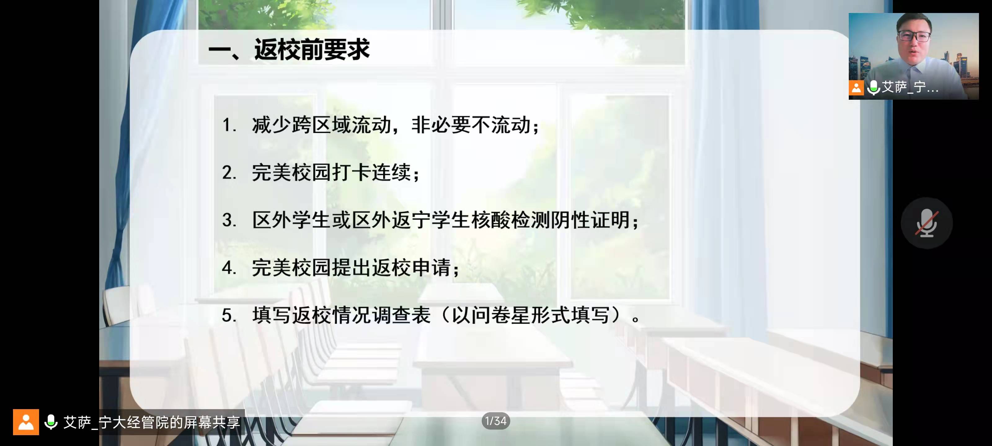 在线上召开了各年级本科生年级大会,学生工作办公室主任黄旭兴、辅导员艾萨•阿尤普、孙文元、禹文杰以及各年级全体学生参加会议。