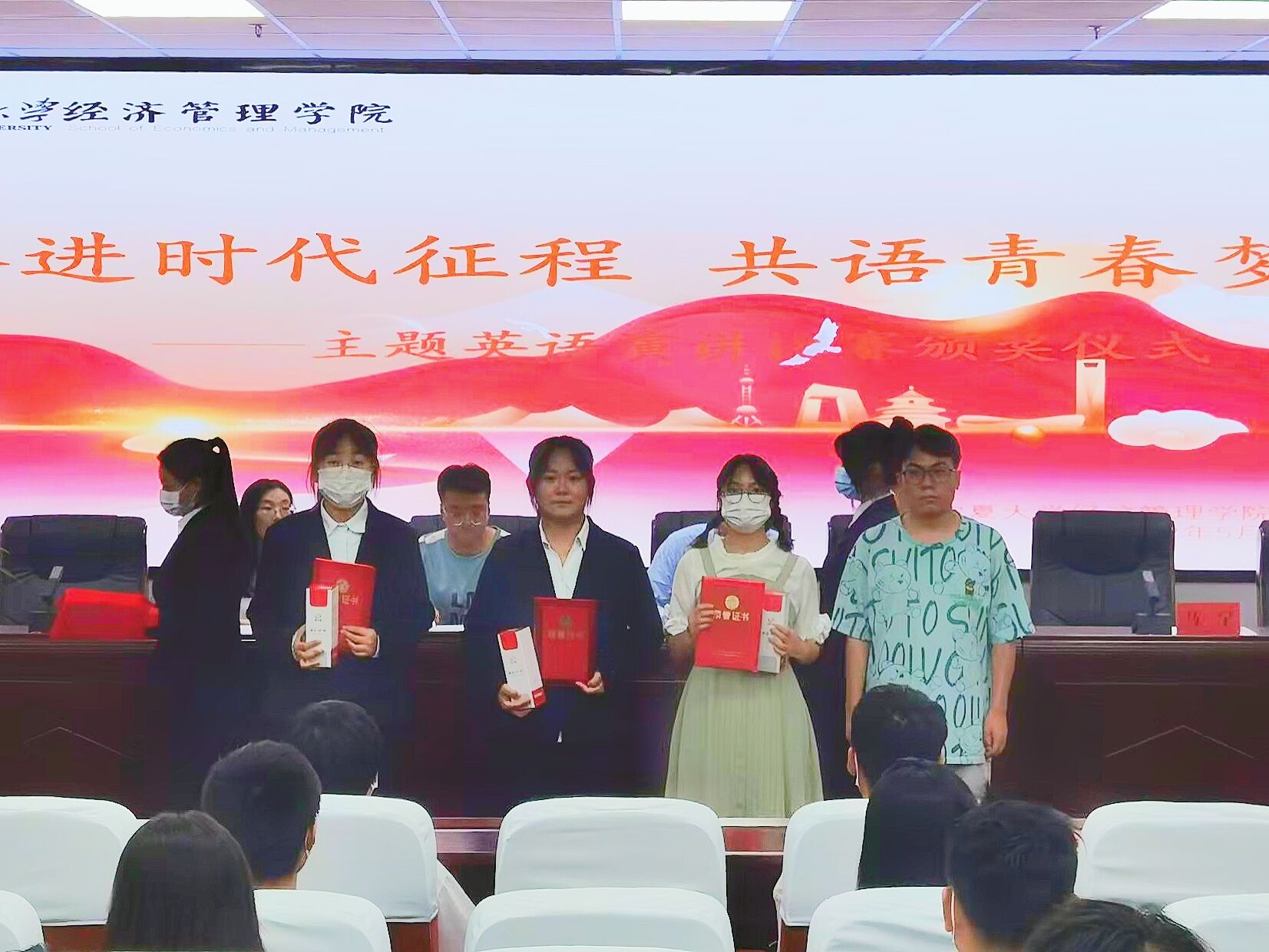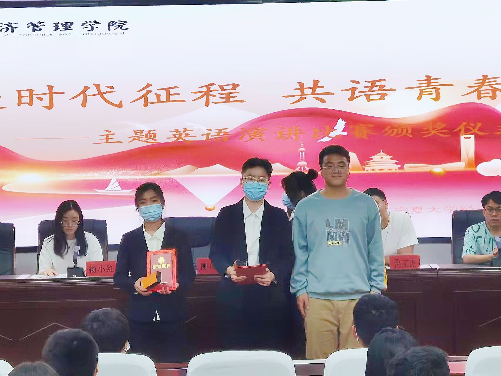 英语演讲比赛中,曹媛媛获得一等奖,马睿悦、何燕获得二等奖,宋雪婷、胡浩然、马荣获得三等奖,程爽、马颖、杨蓉蓉获得优秀奖。