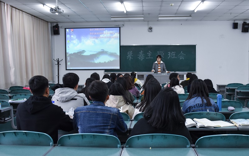 2018级各班学生在贺兰山校区文荟楼开展了禁毒教育主题班会。此次班会由各班班委主持。