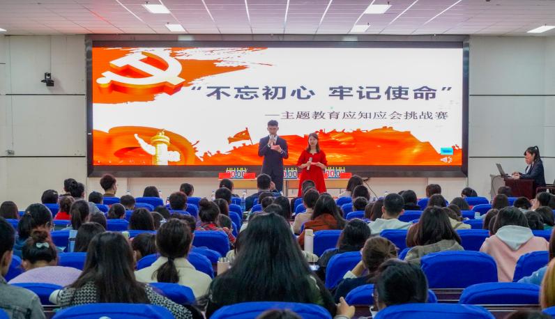 于贺兰山校区文荟楼东报告厅举办“不忘初心,牢记使命”主题教育应知应会挑战赛。院党委书记张桓,副书记程胜利,会计学本科生党支部书记王嘉豫,经济学本科生党支部书记何韶华参加活动。学院各学生党支部成员、第十期发展对象和第三十四期积极分子到场学习。挑战赛由18级学生聂得香、爨露佳主持。