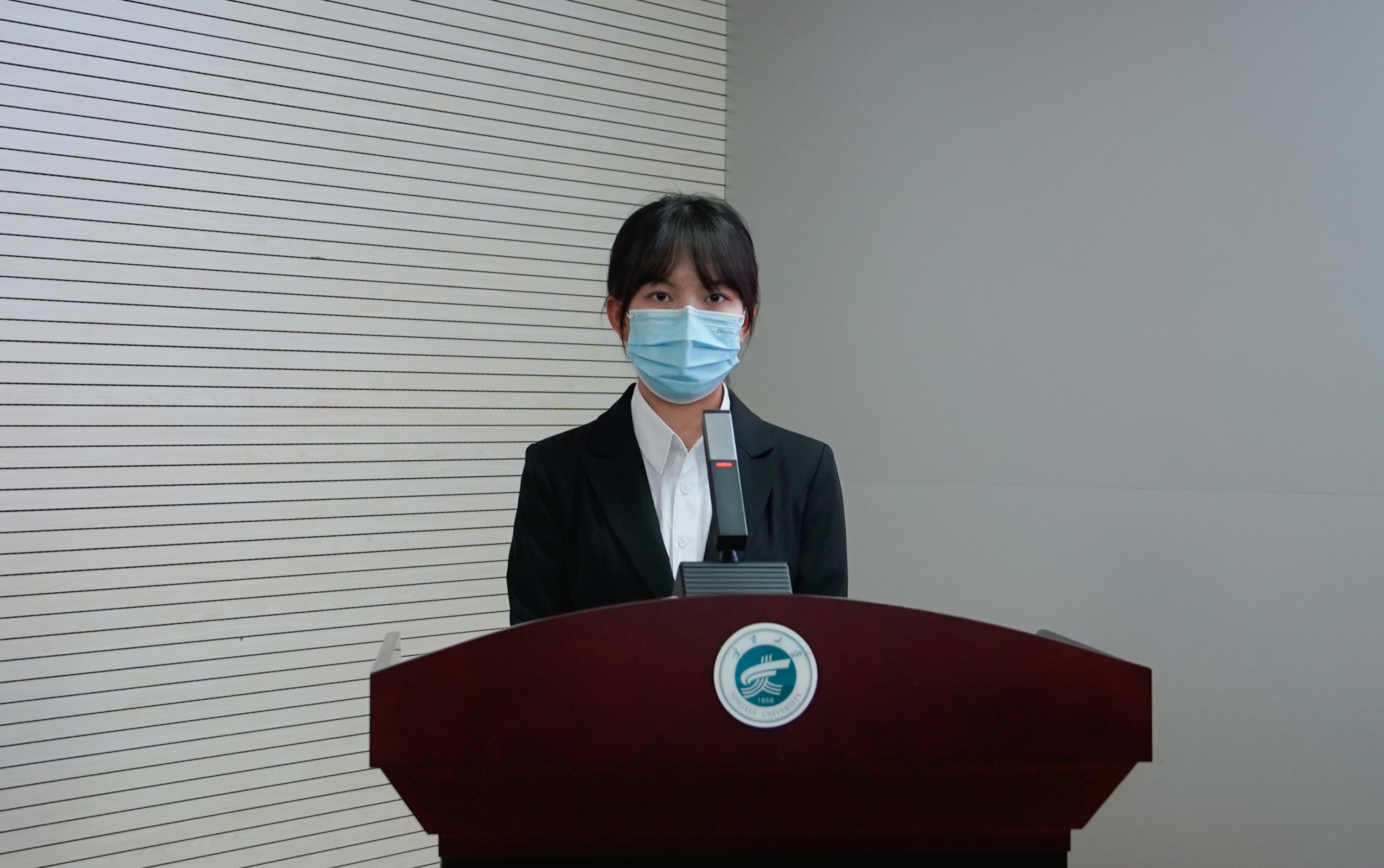 学生代表金鳞贞对学生社区功能党支部的工作人员表示感谢,并向学生社区功能党支部全体党员提出三点期望:一是希望党员同志敢为人先,奋进担当;二是希望党员同志团结上进,深学钻研;三是希望党员同志坚定信念,牢记初心。