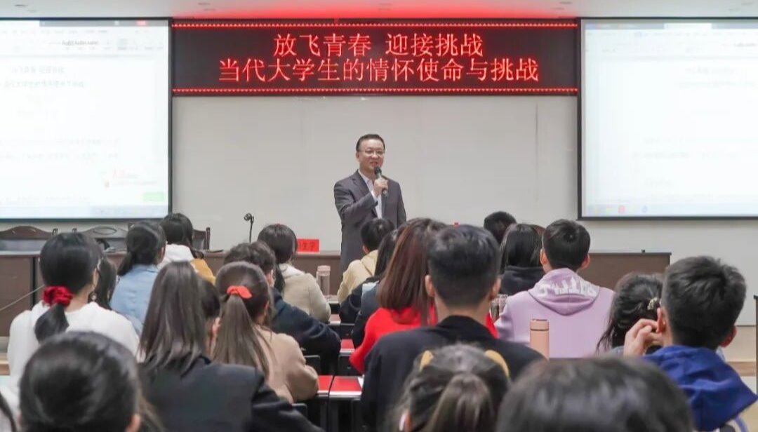 客座教授田生宇老师,在贺兰山校区文荟楼316教室做了“放飞青春,迎接挑战——当代大学生的情怀使命与挑战”的专题报告。学院领导、老师程胜利、何韶华及十三期青马班全体学员参与本次课程,报告由程胜利主持。
