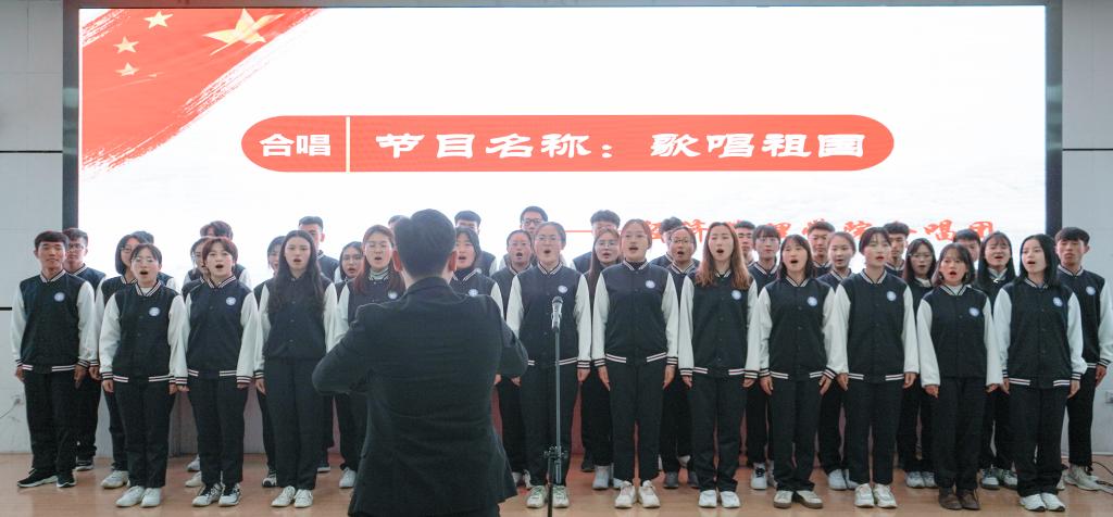 合唱团表演合唱《歌唱祖国》,歌声嘹亮,情感饱满,节目充分展示了学生们的爱国主义热情和昂扬的精神面貌,体现了污污漫画