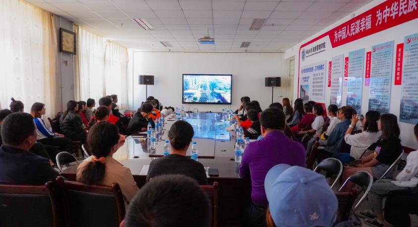 师生于10月1日早9点齐聚贺兰山校区文荟楼902会议室观看盛大庄严的“庆祝中华人民共和国成立70周年大会”。