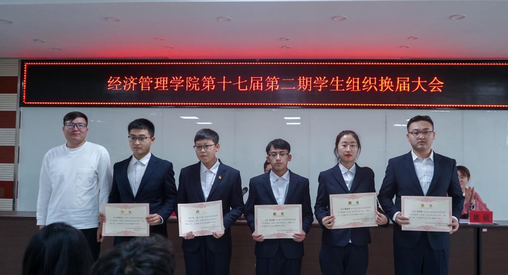 会议上,学院党委副书记程胜利为学生会主席团成员、学院团委副书记、网络思想政治工作中心副主任、社团联合会副会长颁发聘书;艾萨为团委(社团联合会)学生骨干代表颁发聘书;姚硕、孙文元为学生会(网络思想政治工作中心)学生骨干代表颁发聘书。