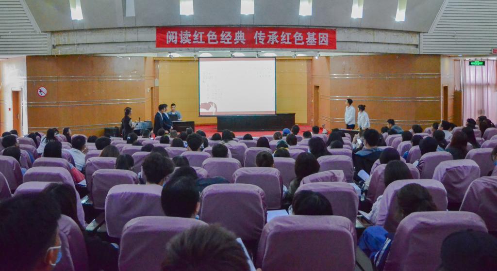 流通阅览党支部书记武永久为在场的同学们做了读书分享,向同学们推荐了56种红色经典。他着重介绍了《习近平的七年知青岁月》、《毛泽东的诗赋人生》、《红星照耀中国》等红色经典著作,希望同学们能在阅读红色经典中感受先贤精神,并从他们身上汲取文化养分和精神力量,做新时代红色基因的传承者。