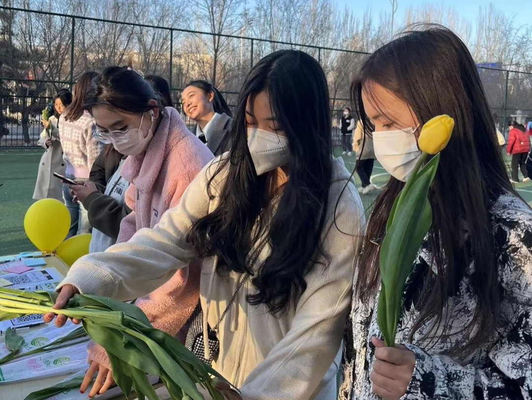 为了庆祝这个重要的日子,展现女生的风采。让女生的可爱、优雅、温柔、智慧、坚韧…如春天的花一样在这个万物复苏的时节绽放属于自己的光彩。在此次活动中,个个青春洋溢的笑脸与夕阳的余晖形成最美的光景。女生们纷纷写下自己最美好的心愿并且粘贴在小黑板上。做完这些还可以领到美丽的鲜花。在操场上,女生们有的唱着歌,有的捧着鲜花拍照,每个人的身影都显得那么美好。
