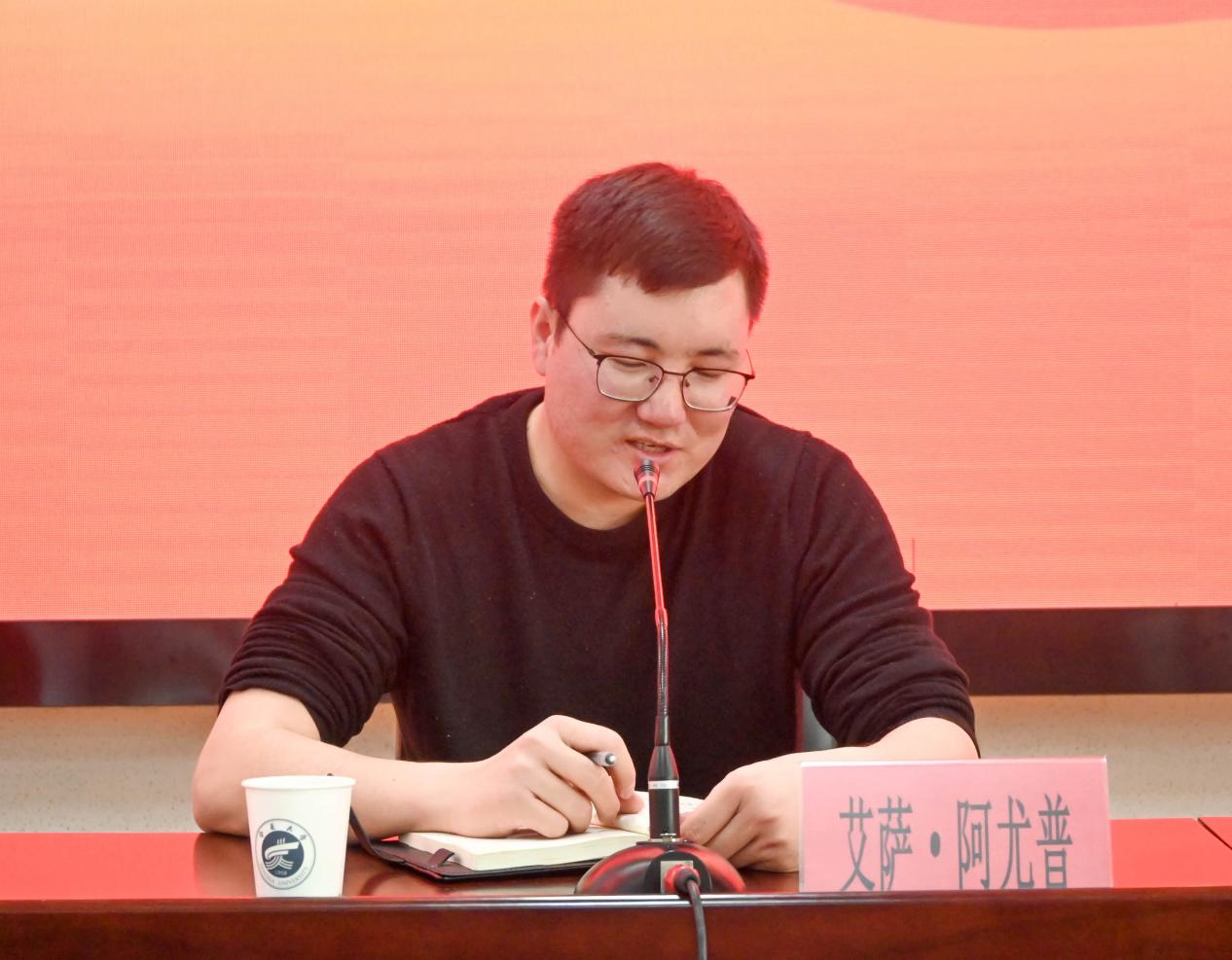 (西部发展研究院)党委副书记常江,学生工作办公室负责人艾萨·阿尤普,学生工作办公室辅导员孙文元,研究生辅导员张春娜及2020级全体同学参加会议。会议由艾萨主持。