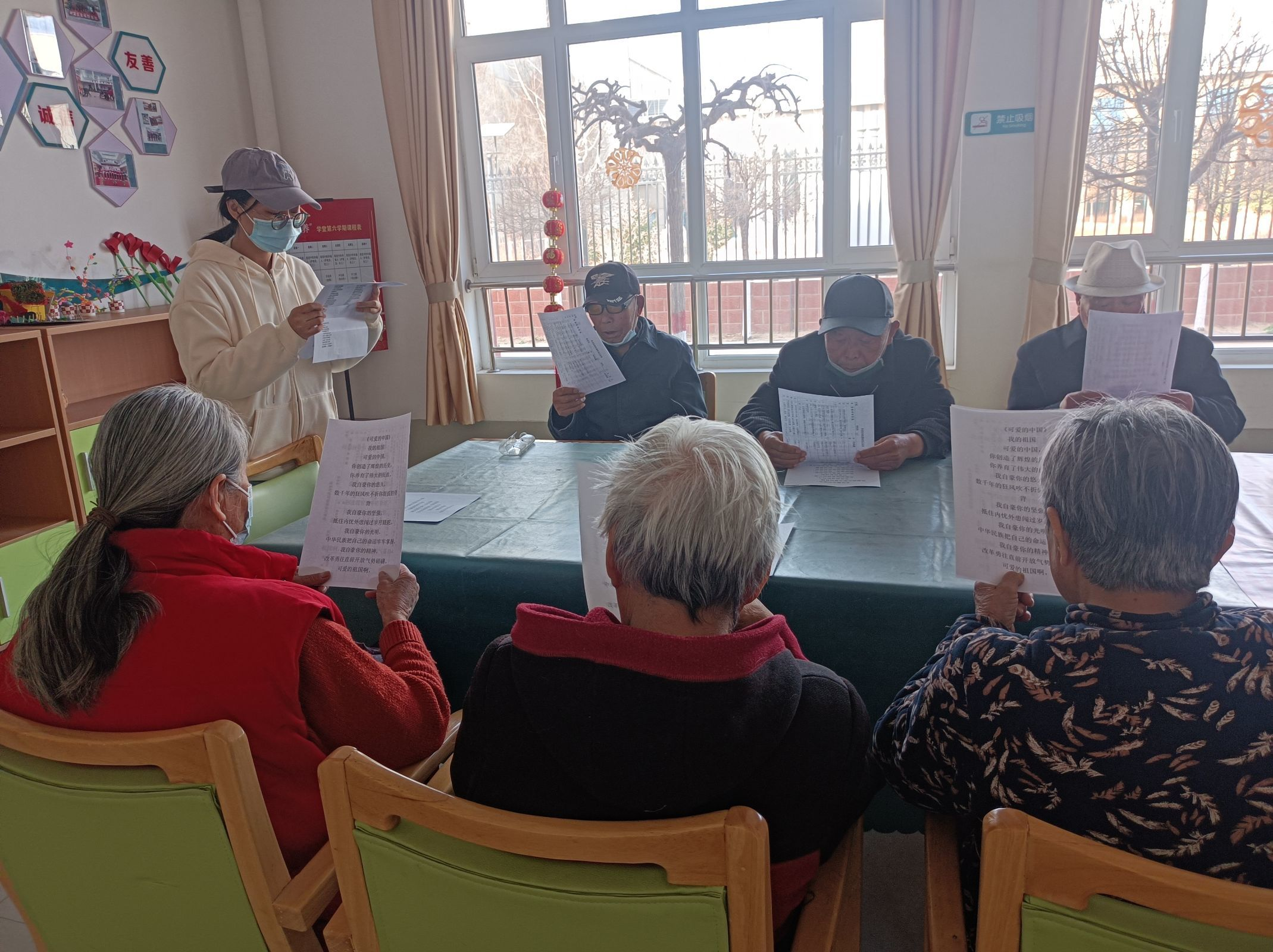 此次活动很有趣,从没想到可以和陌生的爷爷奶奶们一起学习红歌和诗句,他们比我想象的更有生命力,虽已尽夕阳,却仍怀希望。