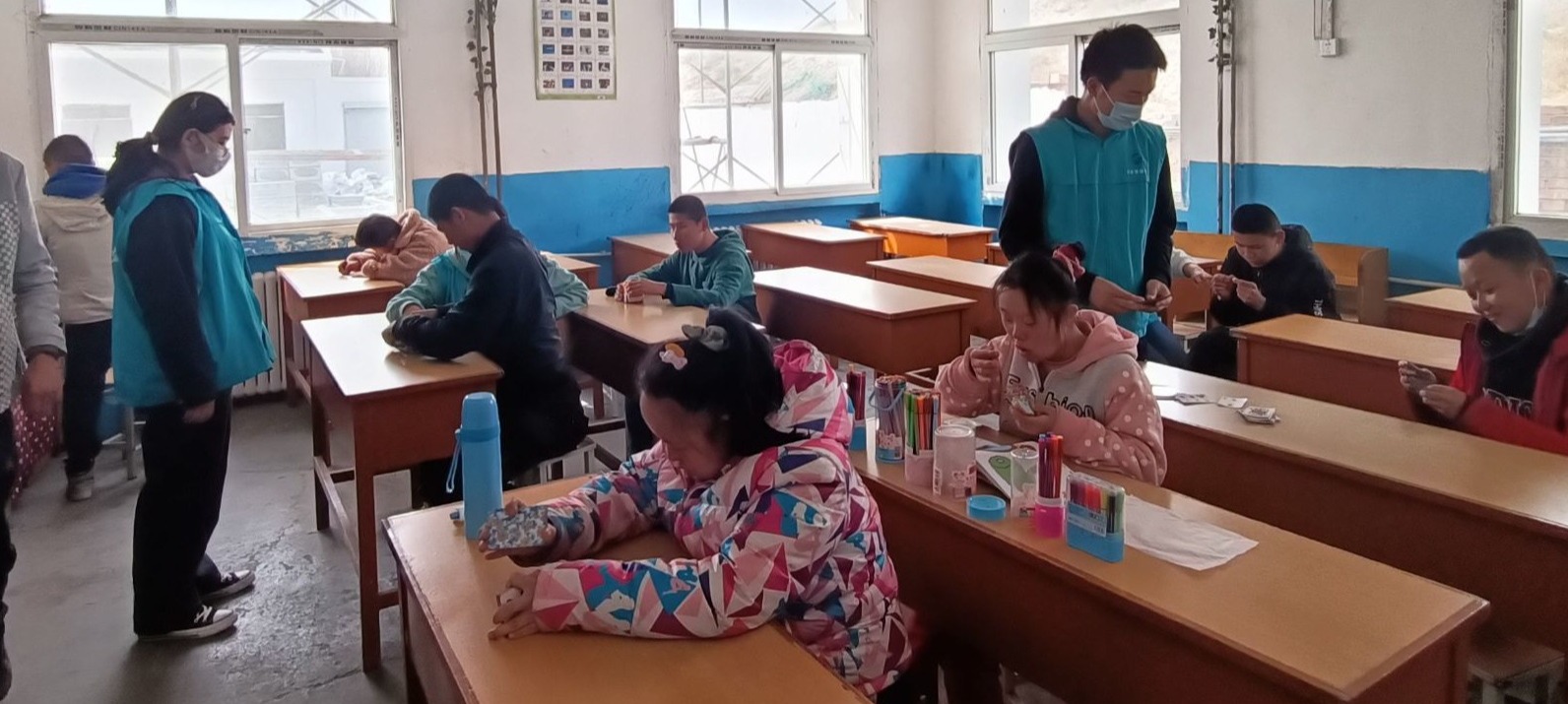 那一张张白纸上勾勒的是孩子们天马行空的童年,也是他们无限可能的未来。这张纸由他们执笔,由我们指引,定能绘下五彩梦想。他们虽是迟开的花朵,但拥有最迷人的芬香。