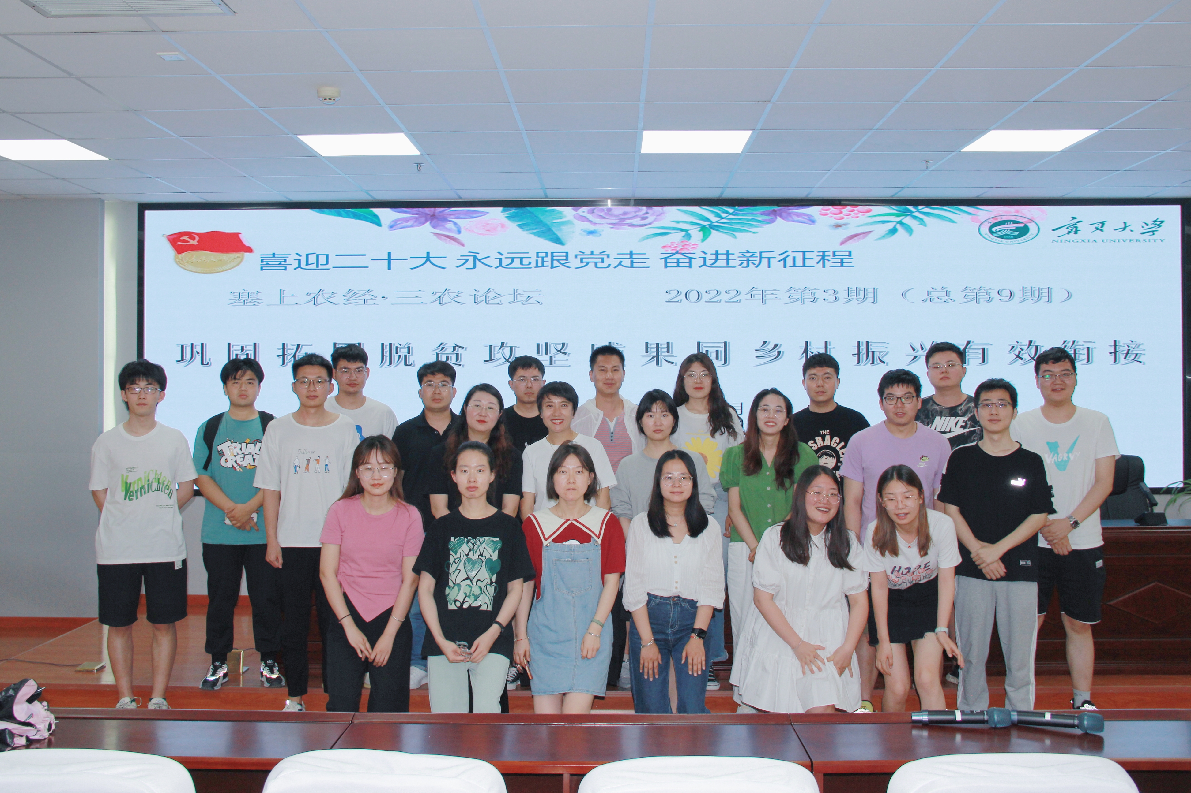 农经教工党支部、宁夏乡村振兴战略研究中心联合主办的塞上农经·三农论坛第3期在文荟楼316如期举行。特邀宁夏党校公共管理教研部副教授周玉婷作主题报告——“巩固拓展脱贫攻坚成果同乡村振兴有效衔接”。农林经济管理系主任东梅及部分师生参加了此次讲座。讲座由王琳瑛老师主持。