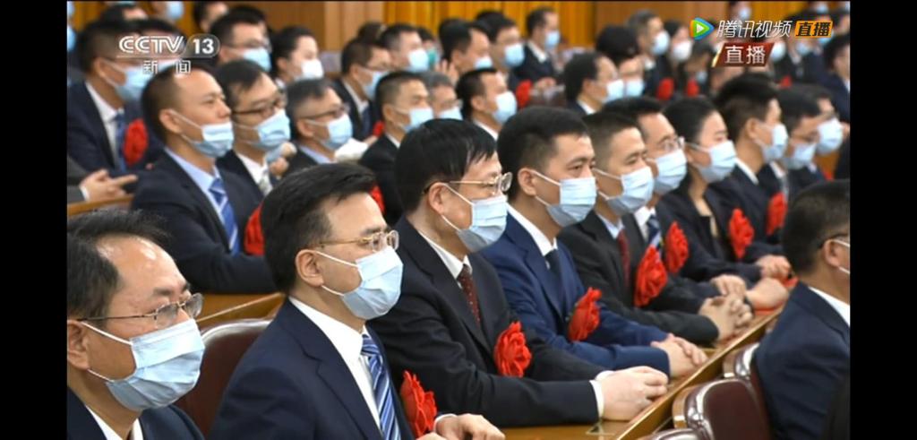 观看前,全体同学起立奏唱国歌并向在此次抗击疫情战争中牺牲的英雄致以沉痛哀悼。伴随着《义勇军进行曲》的豪迈歌声,大会正式开始,中共中央总书记、国家主席、中央军委主席习近平同志向钟南山院士等四位国家勋章和国家荣誉称号获得者颁授勋章、奖章并发表重要讲话,对全国抗击新冠肺炎疫情1499名先进个人、500名先进集体、全国优秀共产党员及全国先进基层党组织进行表彰,这一幕,这些在危急时刻不忘初心,牢记使命,彰显政治勇气和责任担当的光荣形象正通过电视和网络传遍世界。随后,共和国勋章获得者钟南山院士发言,钟南山院士对我国在新冠疫情中取得的胜利进行了总结,并对取得的阶段性胜利表示肯定,“健康所在、性命相托”,钟南山院士用一位医务工作者的赤诚之心表达了自己身逢盛世将不负盛世的决心。随后,抗击疫情先进代表刘正印、桂小妹先后发言,他们以自己抗击疫情的真实经历向大家动情地讲述了一位医务工作者、一位社会工作者当国家有难时的担当,表彰大会在国务院总理李克强总结后结束。同学们在观看过程中聚精会神,向抗疫功臣表达敬意。