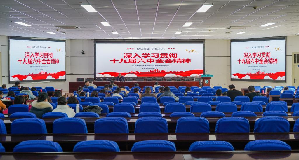 在贺兰山校区文荟楼东报告厅举行十九届六中全会的专题学习会。污污漫画