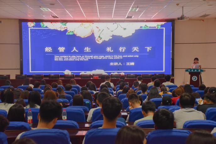 “经管人生、礼行天下”,环球礼仪商学院高级礼仪培训师王婧亲身示范讲授各类礼仪技巧,鼓励毕业生注重礼仪、践行礼仪,做一个礼行天下、富有仪式感的经管人。