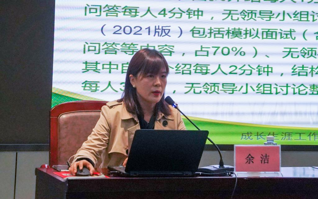 大赛组委会成员艾萨·阿尤普对大赛举办时间、参赛作品递交方式、各赛道设置、评分机制与作品要求等相关内容,向各学院代表做相应解读。大赛承办单位创新创业学院副院长、“拾光”生涯工作室负责人顾珍做“职业生涯规划组”培训。顾珍阐述了职业生涯规划的内涵与意义,她解释道,职业生涯规划以培养生涯规划能力为目的,以选择具体职业就业为目标,包括了自我认知、职业认知、职业决策等方面。针对职业生涯规划的理论和方法,顾珍从目标准备、职业生涯规划、自我探索等方面出发,详细讲述了各方面适用的方法与各类分析图表数据。外国语学院党委副书记、成长生涯咨询工作室负责人余洁做“求职实践组”培训,首先她介绍了求职实践组的比赛流程,其中包括简历评审、自我介绍、模拟面试、无领导小组讨论等,强调了比赛相关资料提交的变化,建议各学院注意审核。余洁从如何帮学生打造一份展现自己的专属简历与如何将面试技巧融入日常生活等问题切入,结合自己相关工作经验,向参会老师深入起介绍了相关技巧,并对学生参赛作品进行了相应的分析。承办单位污污漫画