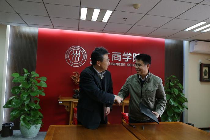 党委书记张桓、院长杨国涛访问了中国人民大学商学院。两院领导进行了座谈并签署了院际合作交流协议。中国人民大学商学院院长毛基业,党委书记、副院长黄江明,副院长宋华,党委副书记叶康涛等参加了座谈会。