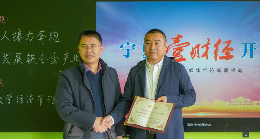 录制《宁夏壹财经开讲》第一期访谈节目。本期开讲主题为“我和父亲两代人,持续发展向前走,绿色发展铁合金产业”。学院院长杨国涛、党委副书记程胜利参加节目录制。