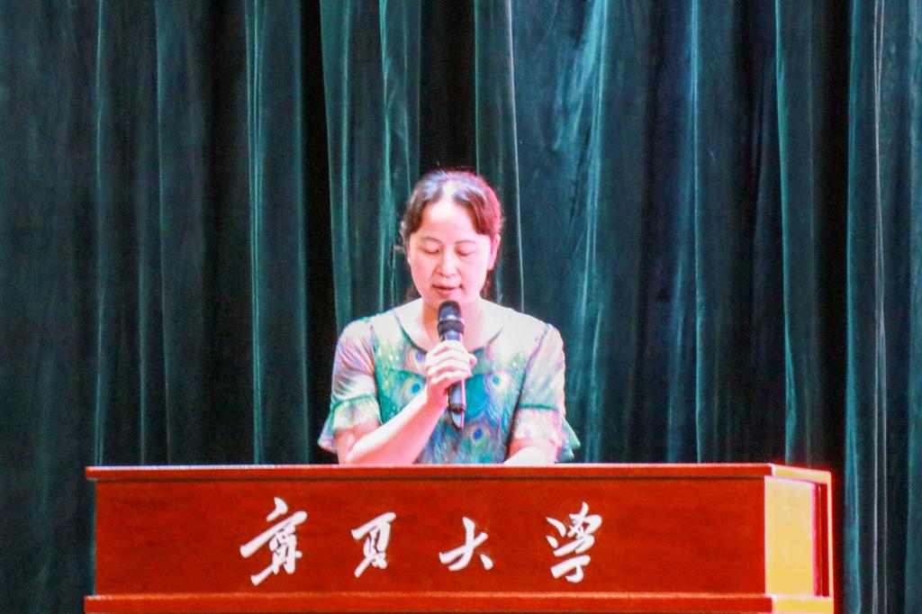校友代表、2020届工商管理专业本科毕业生樊桂君作为校友代表发言。她回顾了大学四年的点点滴滴,美丽的金波湖、沙枣树旁的拐角楼、与奋飞女神相伴的凌云广场都是他心中永远的牵绊。她用自身的求职经历,为毕业生们提出了努力学习好专业知识、注重实践、做好自己的职业规划、坚持学习、坚持读书的建议。对于母校,她心怀热爱,对于恩师,她心存感激。她希望所有毕业生不管走到哪里,不管在什么岗位工作,都要继续填好人生的履历表,为母校争辉添彩。不管在哪里,一定要牢记校训,做睿智而富有激情、胸怀大志而脚踏实地、富有责任并勇挑重担的人!