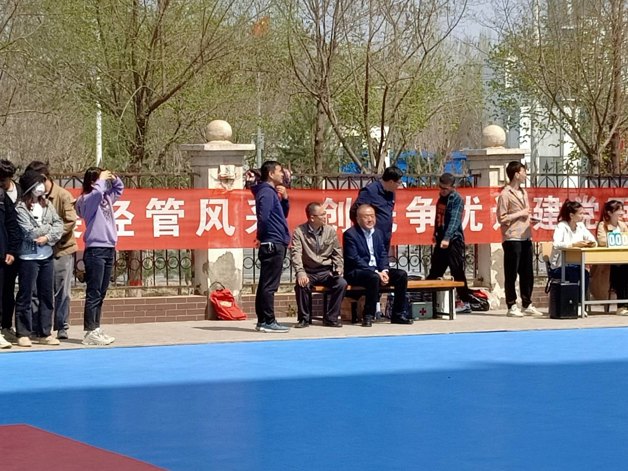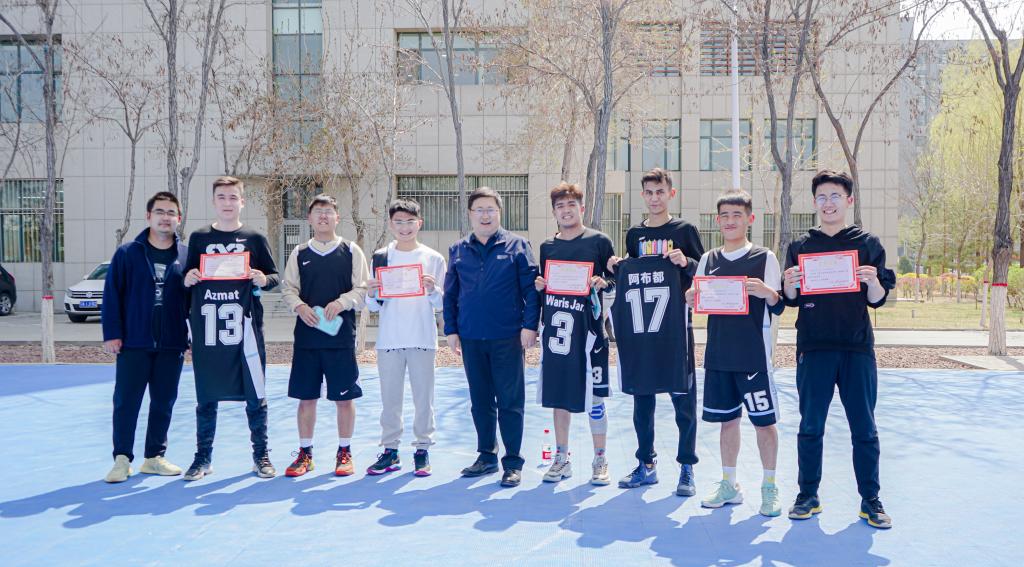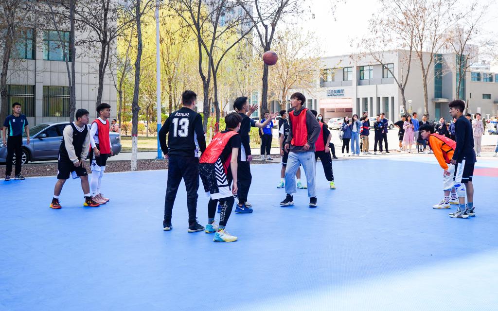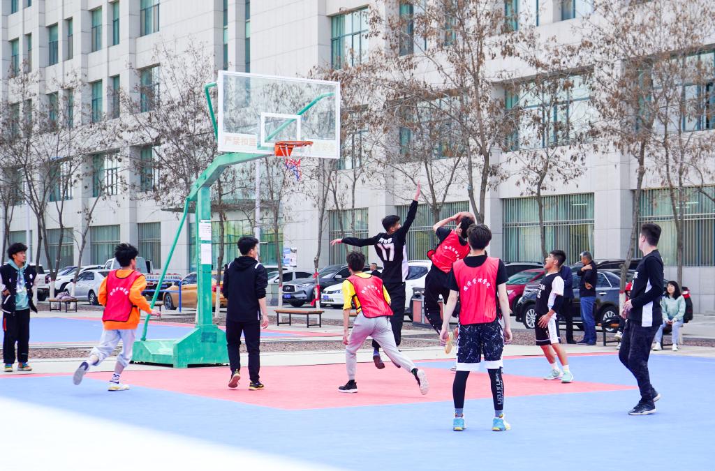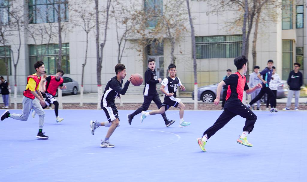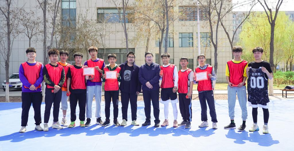 “逐梦杯”篮球比赛决赛在贺兰山校区篮球场火热开赛。学院书记朱伟,院长杨国涛,副书记程胜利、马建宏,老师代表付森、马志云、杨波、张彤、龙卫红、刘万军及2020级辅导员孙文元到场为队员们加油助阵。