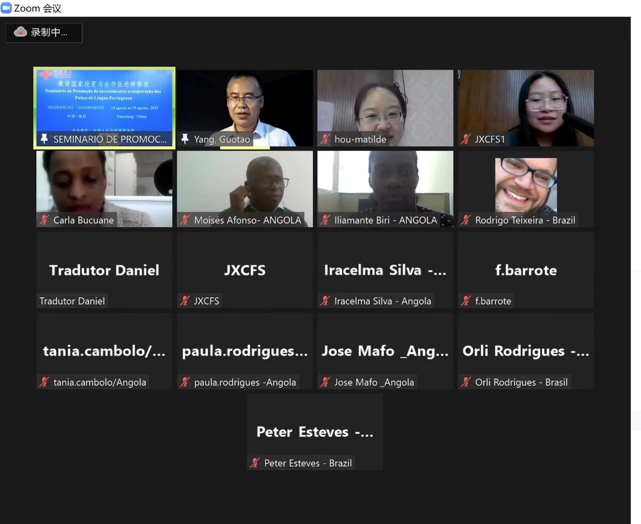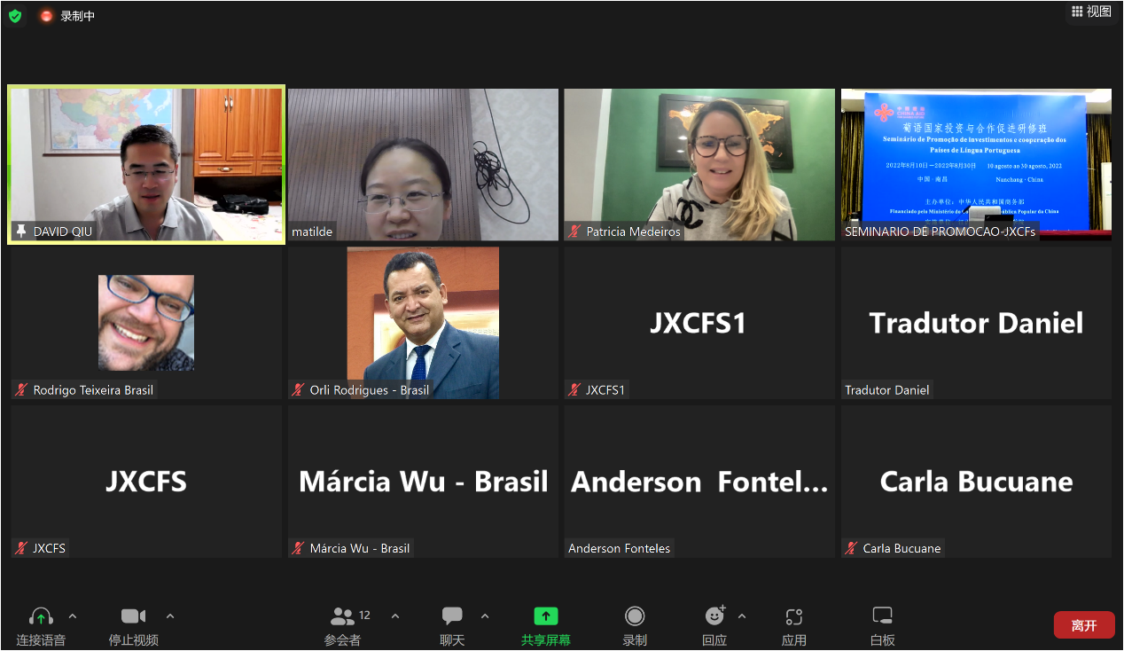 2022年8月10日至8月30日,由商务部主办、江西省商务厅承办、江西外语外贸职业学院具体组织实施的“葡语国家投资与合作促进研修班”在线培训成功举办。此次研修班共有来自巴西、莫桑比克和安哥拉3个国家的41名学员参加培训。污污漫画
