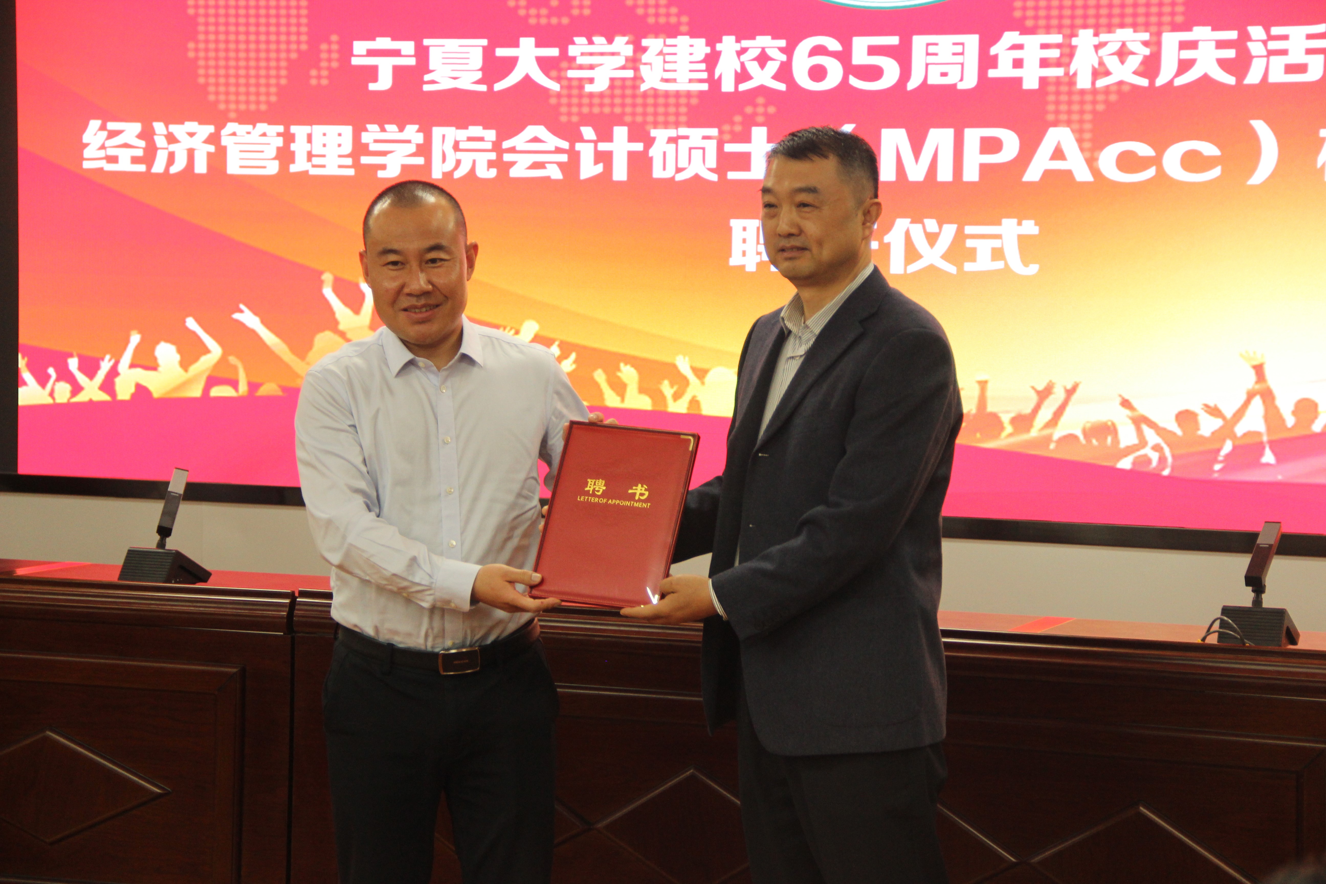会议第三项内容是学院领导为校外导师颁发聘书。宁夏水投云澜科技股份有限公司董事长陈志灵,宁夏西北明天科技股份有限公司董事长赖广蒙,宁夏昊源联合会计师事务所所长牛建强,宁夏农垦集团和旅游集团外部董事王格林,自治区国资委党群部副处长赵吉刚,天华(宁夏)会计师事务所首席合伙人王海智,宁夏银行石嘴山分行副行长丁自明,中和资产评估有限公司宁夏瑞衡分公司副总董文忠,信永中和会计事务所银川分所合伙人梁建勋,宁夏宁东融资担保有限公司综合办公室主任龙鹏程,上陵牧业董事长秘书沈致君,宁夏昊源联合会计师事务所项目经理张凤莉,宁夏银行股份有限公司资深营销专员夏会云,受聘成为污污漫画