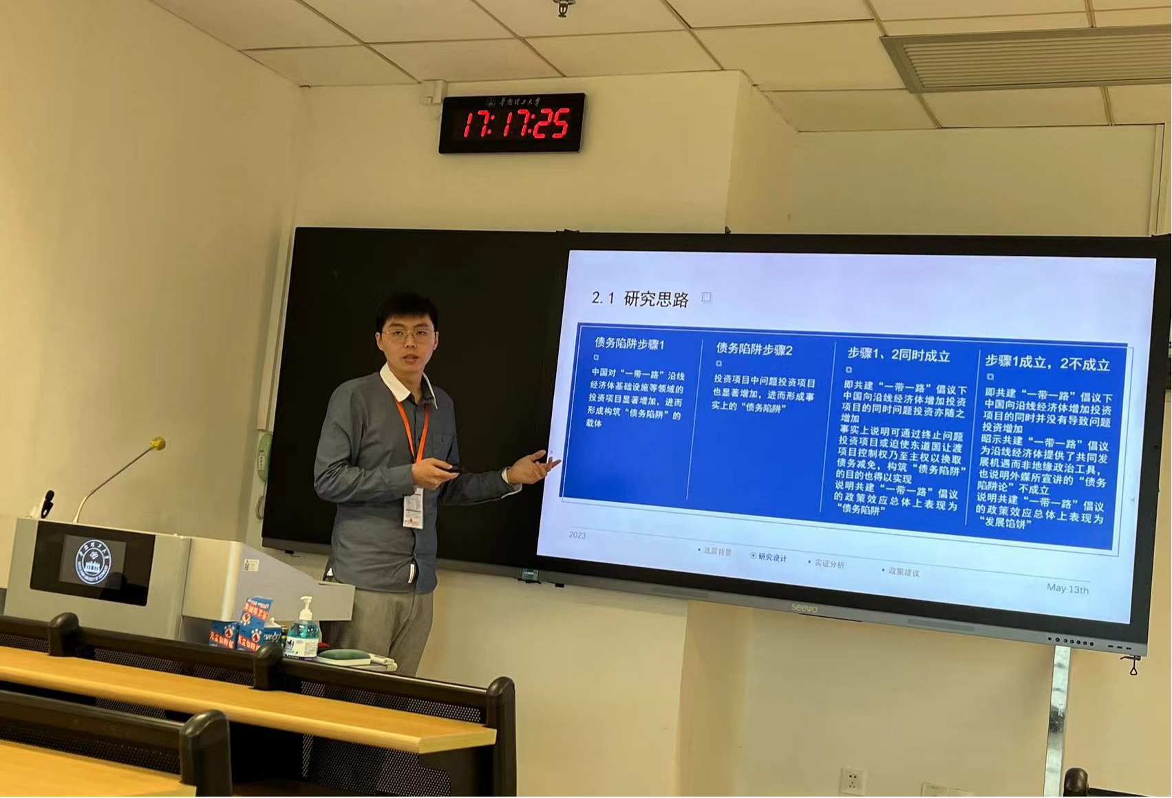 的4位宣讲者围绕出口与能源效率、创新城市、PPP收益来源与私人部门投资、共建“一带一路”倡议的投资效应等热点话题展示研究成果。论文宣讲者互相点评、各抒己见,深入探讨各自的学术观点。在提问交流环节,来自不同领域和院校的学者们与宣讲者进行了深入的学术研讨和交流。