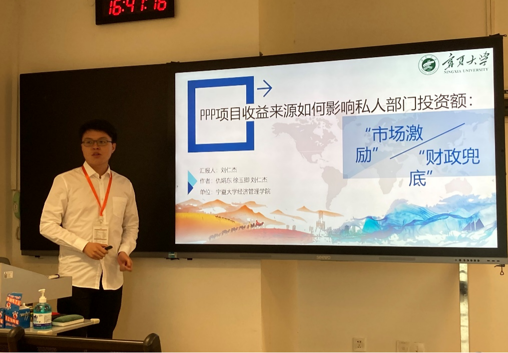 硕士研究生刘仁杰汇报了论文《PPP项目收益来源如何影响私人部门投资额:“市场激励”还是“财政兜底”?》。论文基于“一带一路”沿线基础设施建设PPP项目融资难、私人部门参与积极性不足和“一带一路”高质量推进等背景,结合1996-2019年“一带一路”沿线42国的3041个PPP项目数据,实证检验了PPP项目收益来源对私人部门投资额的影响。研究发现,“一带一路”沿线PPP项目收益来源为“用户付费”等市场化模式总体更容易吸引私人部门投资,即存在“市场激励效应”。