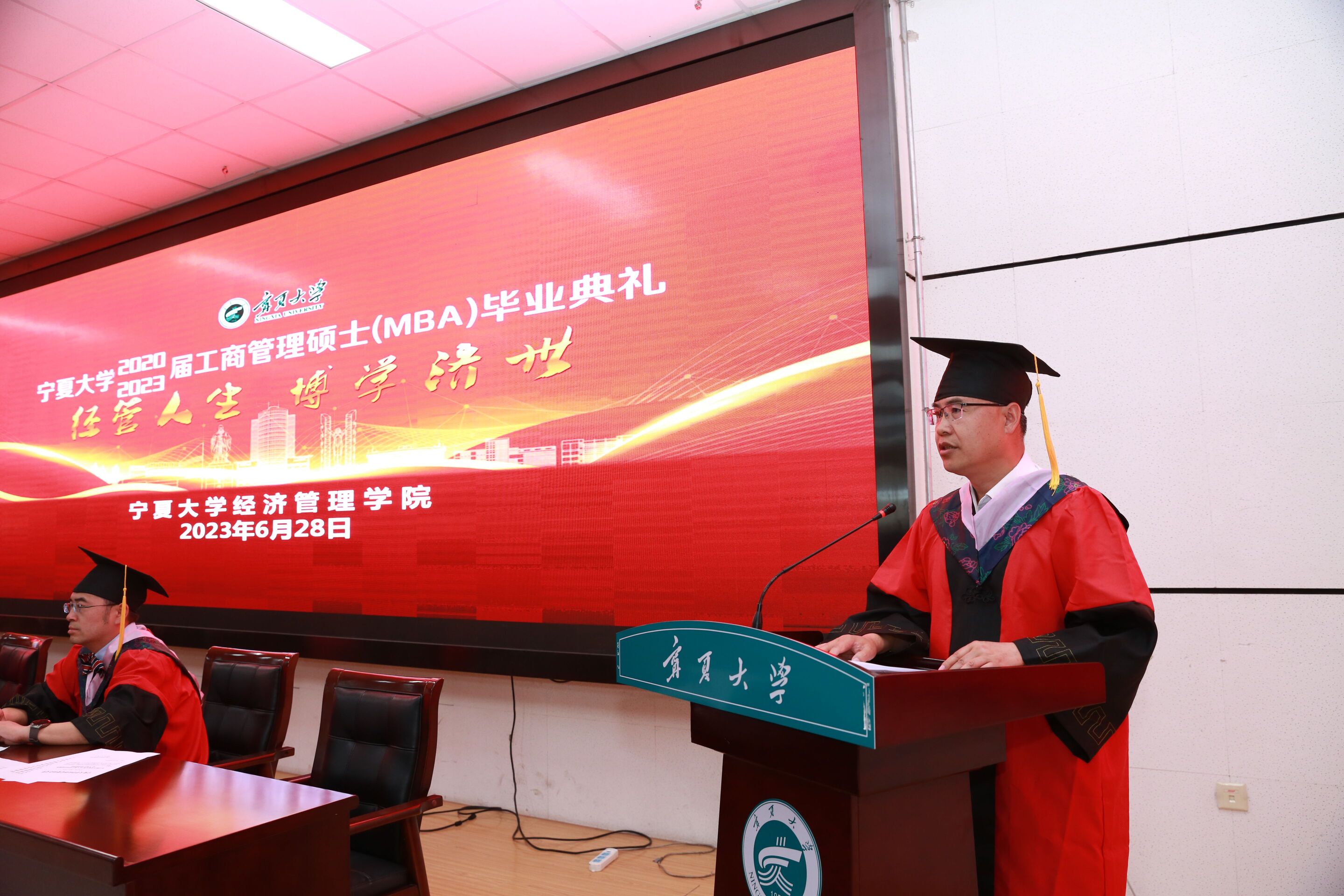 MBA教育取得的成果,回顾了三年线上线下教学相结合的学习历程,要求毕业生们能够积极适应变革、并行不悖合理安排时间、终身学习。希望所有毕业生心怀理想、立长志,树立远大的目标,与祖国同频,与时代同步,成为行业的佼佼者!