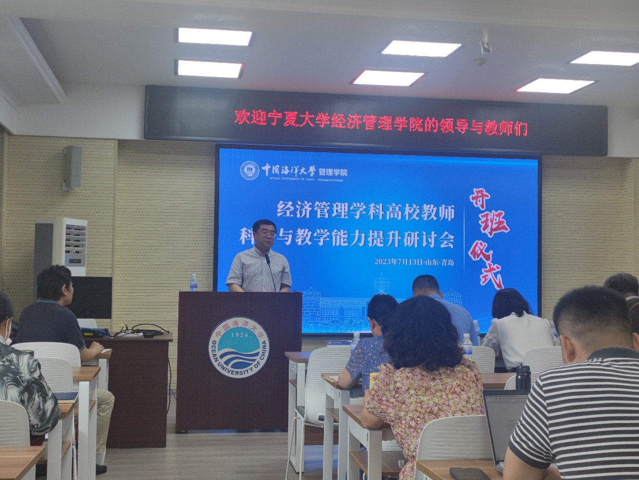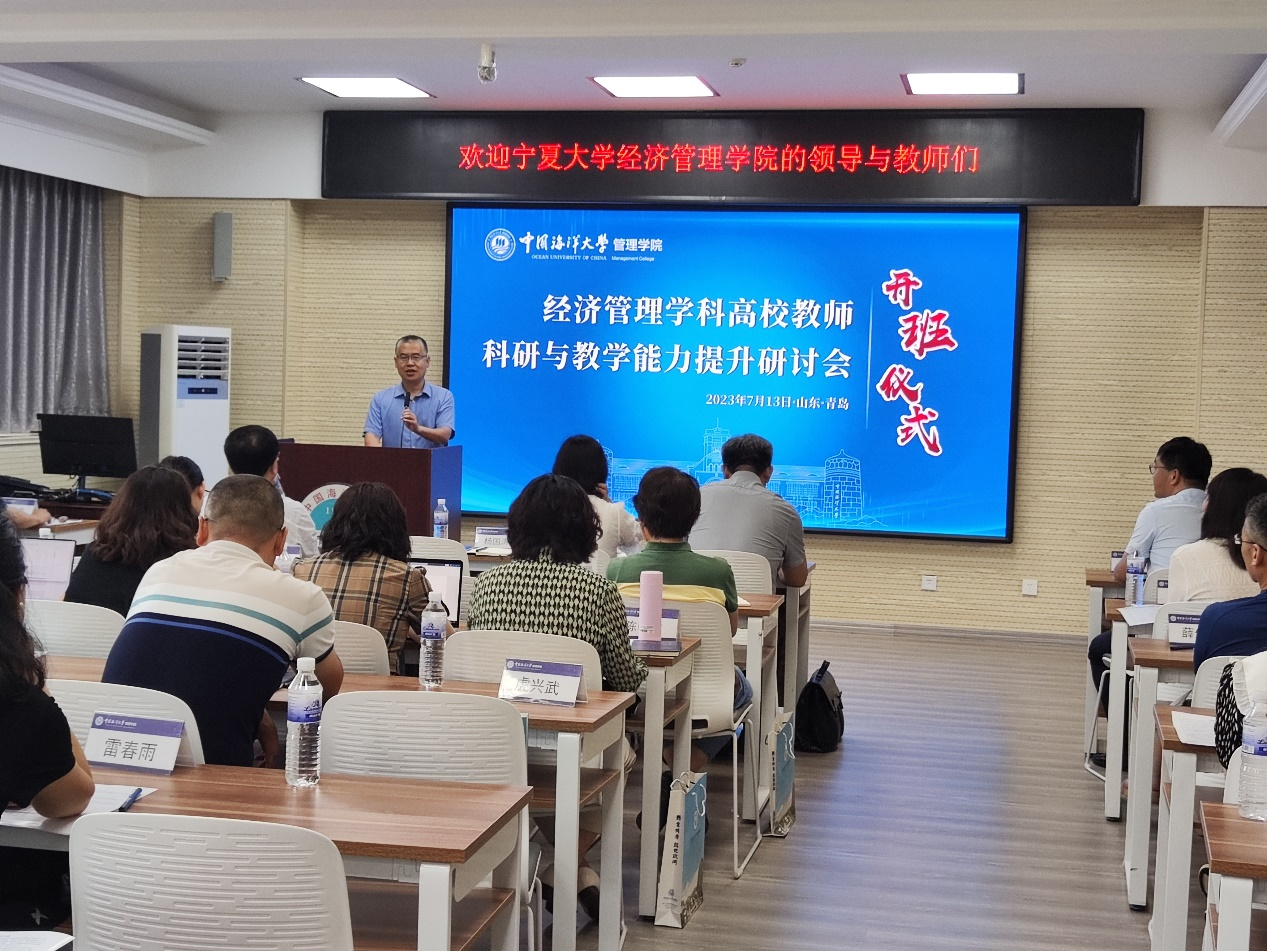 杨国涛院长一行28名教师顺利抵达中国海洋大学崂山校区,参加高校教师科研与教学能力提升研讨会。上午8点30分,本次研讨会的开班仪式顺利举行。