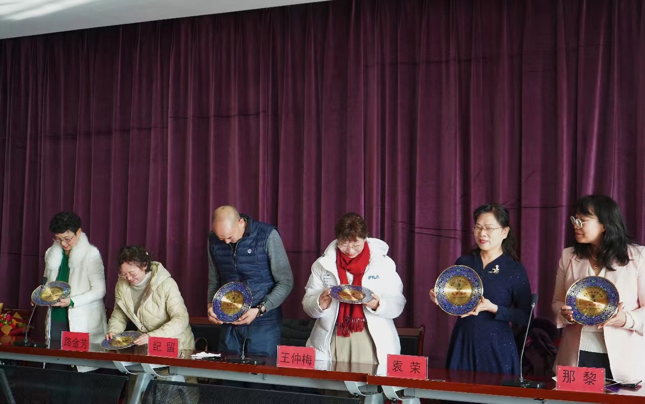 随后,学院领导为各位退休教师颁发荣誉退休纪念品。