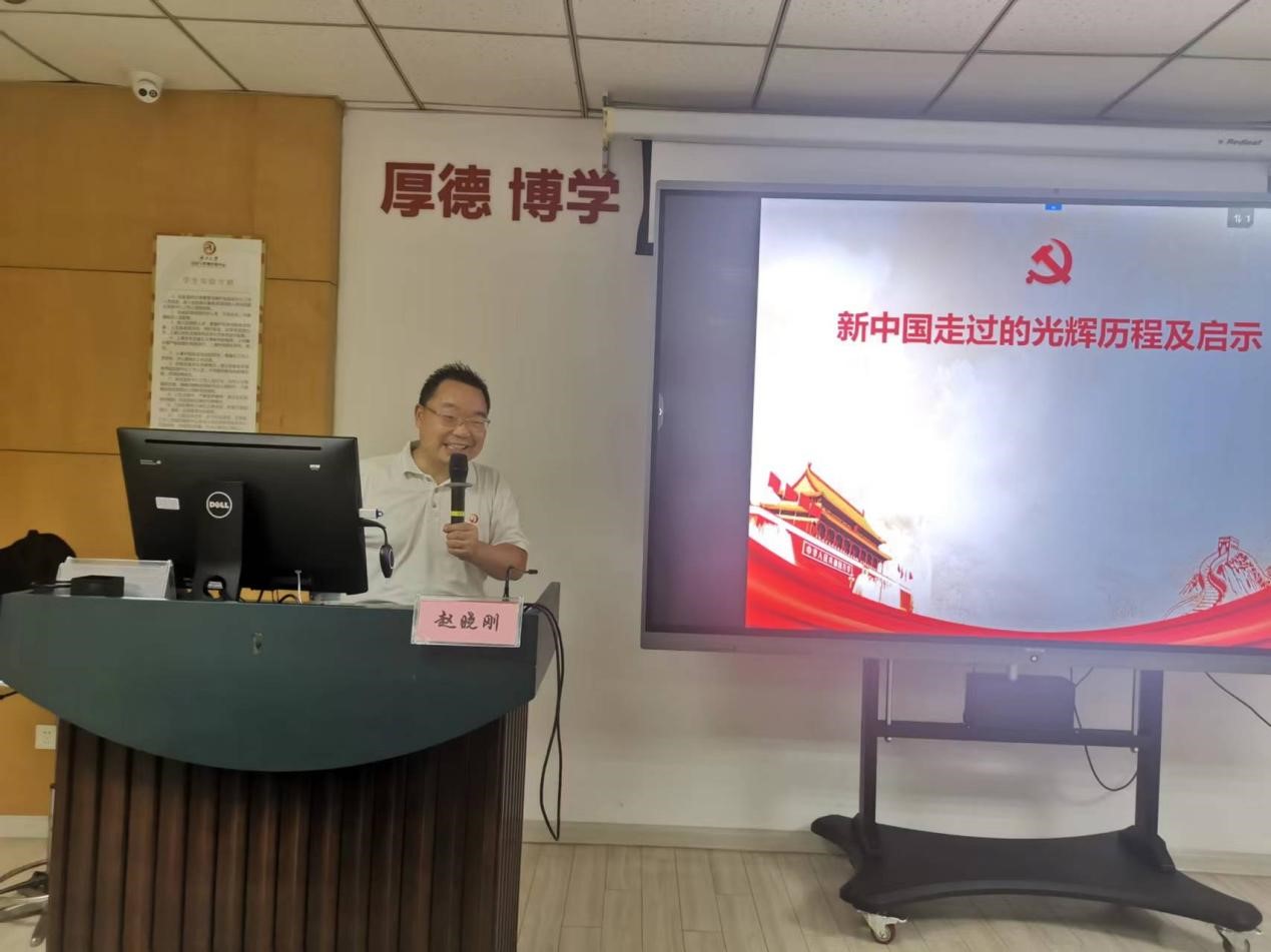 赵晓刚作《新中国成立75年光辉历程及启示》报告。赵教授围绕社会主义革命和建设时期(1949年—1978年)、改革开放和社会主义现代化建设新时期(1978年—2012年)、中国特色社会主义新时代(2012年-)、新中国走过光辉历程、贡献与启示进行全面介绍。
