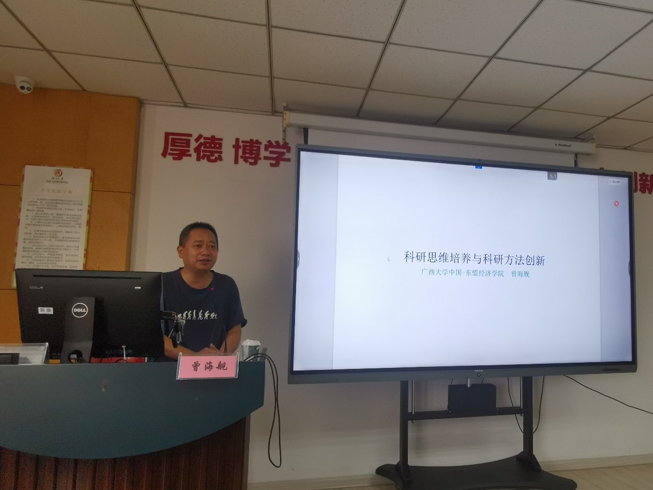 上午曾海舰教授讲授《科研思维培养与科研方法创新》。边远地区高校科研环境的困境、破解困境的能力的提升(提出问题、回答问题)、好的问题(热点现象、基础理论、重大工程)。另外,在报告最后,曾海舰教授与与会教师在科研、学生培养、职业规划等多方面开展对话与交流。