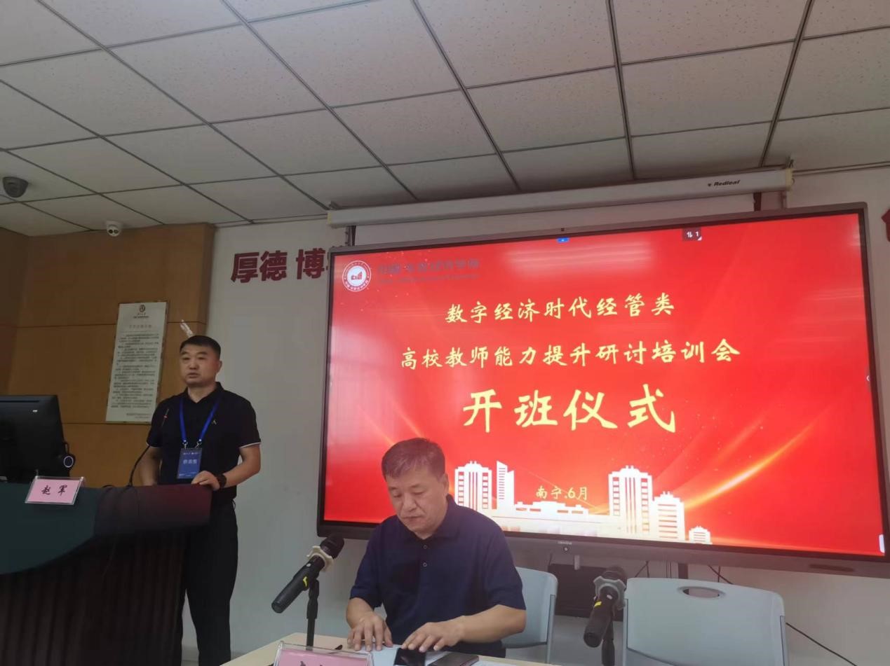 “数字经济时代经管类高校教师能力提升研讨培训会”举行开班仪式。开班仪式由广西大学中国——东盟经济学院/经济学院/中国——东盟金融合作学院培训项目负责人凌雨晴老师主持。首先,广西大学中国—东盟经济学院院长李光辉教授,对污污漫画