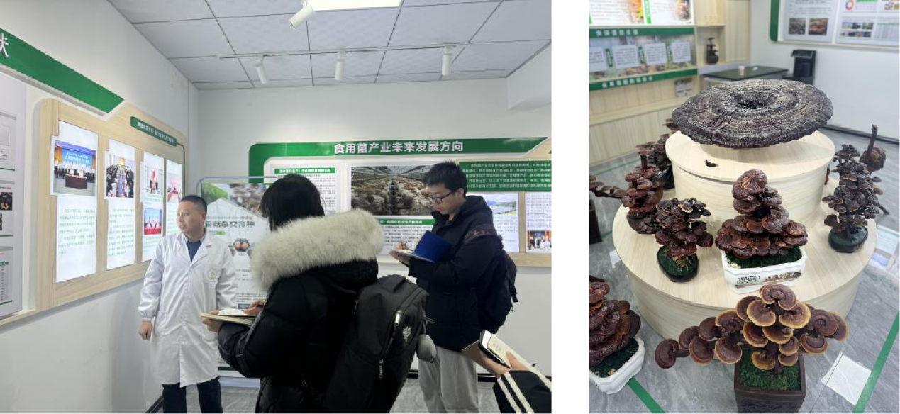 活动伊始,研究中心工作人员王金成老师为师生们做了系统全面讲解,包括中心在食用菌种质资源保护、品种选育、栽培技术研发等方面的科研进展与成果转化情况。他强调:食用菌产业不仅是高原特色农业的重要组成部分,也是推动区域经济、促进富民强村、实现生态循环农业的关键抓手。同学们认真聆听,并就菌种培育周期、环境控制技术、市场推广模式等问题与王老师展开初步交流。