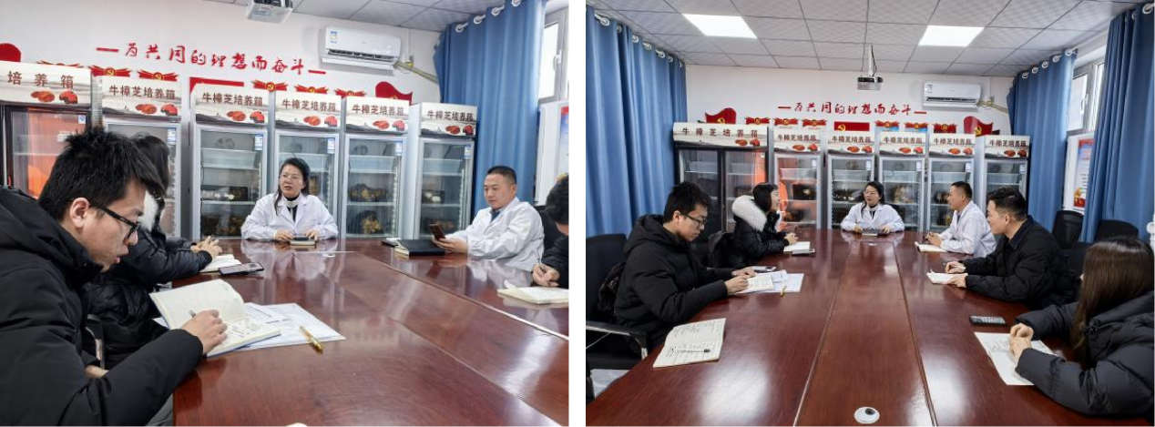 调研最后,研究中心主任任怡莲与师生们进行了总结座谈。任主任从产业政策、科技赋能、市场需求等多维度,分析了宁夏食用菌产业的发展现状与未来趋势。她特别指出:科技研发必须与市场需求紧密结合,人才培养要注重实践能力与创新思维,并鼓励同学们将专业知识与乡村实际相结合,未来在农业科技推广、农村产业规划等领域贡献力量。在答疑环节,同学们围绕“食用菌产业如何带动周边农户”“菌渣循环利用技术”“品牌建设与电商销售”等话题踊跃提问,任主任结合中心实践案例,给予了详尽而富有启发的解答。