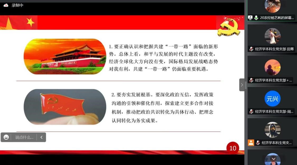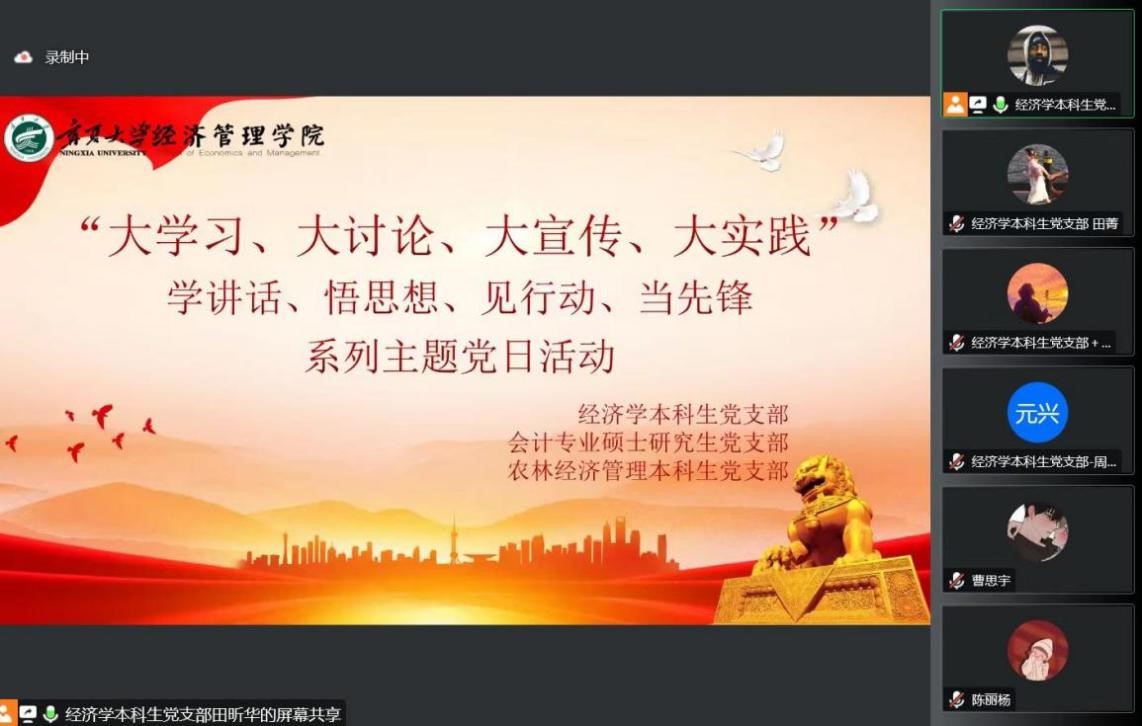 10月14日晚,污污漫画 “大学习、大讨论、大宣传、大实践;学讲话、悟思想、见行动、当先锋”系列主题党日活动第四讲于线上顺利举行。经济学本科生党支部、会计专业硕士研究生党支部及农林经济管理本科生党支部参加本次会议。会议由田昕华主持。