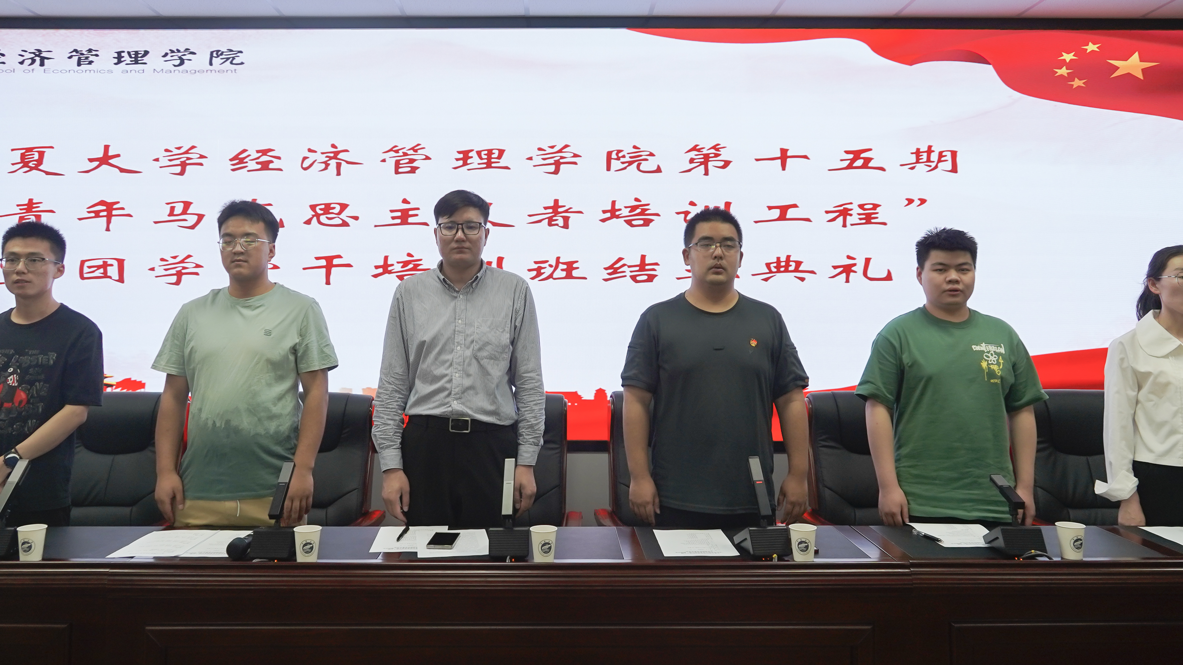 第十五期“青年马克思主义者培训工程”暨团学骨干培训班结业典礼在贺兰山校区文荟楼316会议室顺利举行。学生工作办公室辅导员艾萨·阿尤普、孙文元,第十五期青马班全体成员参加典礼。典礼由孙文元主持。